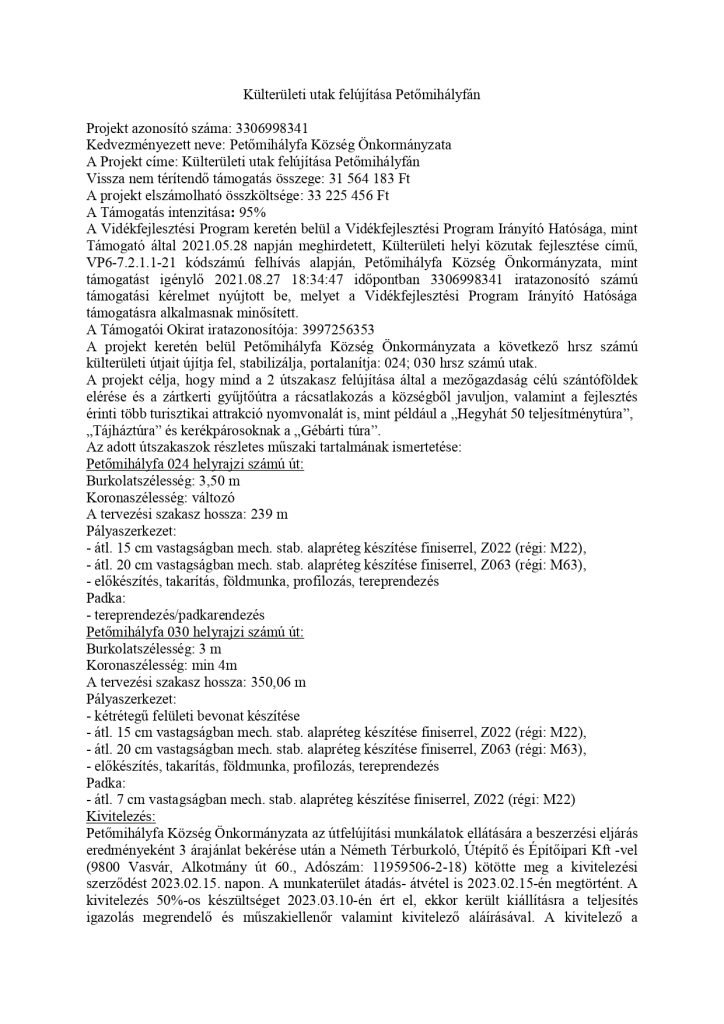 Külterületi utak felújítása